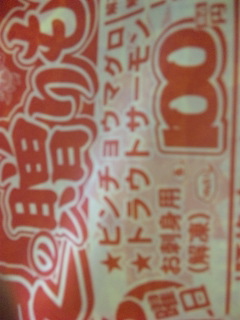 ビッグヨーサン町田小山店にて、★ビンチョウマグロ★トラウトサーモン お刺身用(解凍)100g 100円