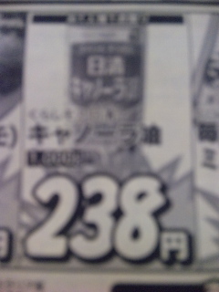 今日のお買い得☆神奈川県相模原版 くらしモア日清キャノーラ油 1000g 238 円!! Produced by No Name Ninja SEO対策テンプレート