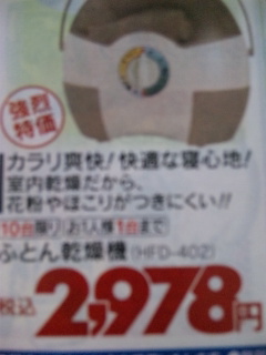 今日のお買い得☆神奈川県相模原版 ふとん乾燥器税込2978 円!! Produced by No Name Ninja SEO対策テンプレート