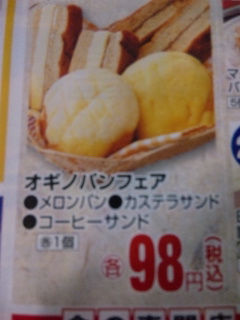 今日のお買い得☆神奈川県相模原版 オギノパンフェア○メロンパン○カステラサンド○ コーヒーサンド各1コ 98 円!! Produced by No Name Ninja SEO対策テンプレート