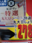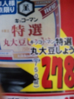 三和西橋本店にて、キッコーマン、特選丸大豆しょうゆ(750ml) 278円。