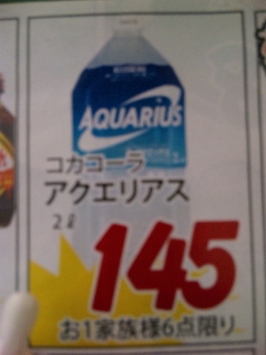 HOME > > [PR] > お買い得商品 > コカコーラ、アクエリアス2 ㍑ 145円!! Admin NewEntry Comment RSS