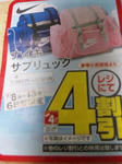 サミット衣料館コルモピアコピオ城山店にて、ナイキ、サブリュック 参考小売価格より、レジにて4割引!!