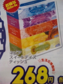 今日のお買い得☆神奈川県相模原版 ネピア・スイートデイズティッシュ・268 円! Produced by No Name Ninja SEO対策テンプレート