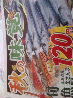 エコス城山店にて、北海道産 生さんま1尾 120円!!