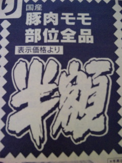 エコス城山店にて、国産豚肉モモ部位全品、表示価格より半額!!