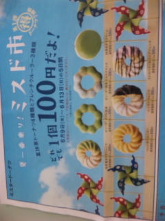 ミスタードーナツ橋本駅前店にて、夏抹茶ドーナツ4種類とフレンチクルーラー3種類 どれでも1個100円!!