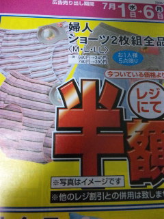 サミット衣料館コルモピアコピオ城山店にて、婦人ショーツ二枚組全品、今ついている価格よりレジにて半額!!