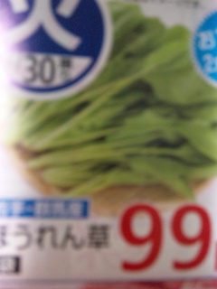 今日のお買い得☆神奈川県相模原版 岩手・群馬産、ほうれん草 1 袋 99円!! Produced by No Name Ninja SEO対策テンプレート
