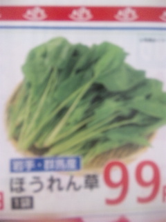 今日のお買い得☆神奈川県相模原版 岩手・群馬県産ほうれん草 1 袋 99円。 Produced by No Name Ninja SEO対策テンプレート
