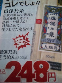 ミスターマックス町田多摩境店にて、揖保乃糸 そうめん(300g) 248円!!