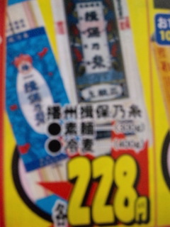 三和西橋本店にて、揖保乃糸 素麺(300g) 冷麦(400g) 各228円。