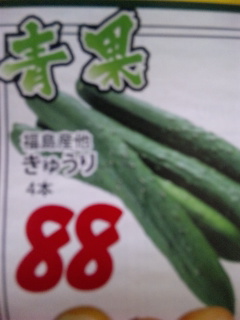 マム肉市場橋本店にて、福島産他 きゅうり 4本 88円!!