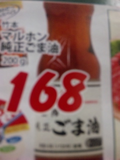 マム肉市場橋本店にて、竹本、マルホン純正ごま油 200g 168円!!