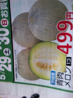 スーパーアルプス城山店にて、茨城産 青肉メロン 1コ 499円!!
