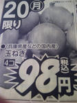 いなげや下久沢店にて、<兵庫県産などの国内産> 玉葱4コ98円!!