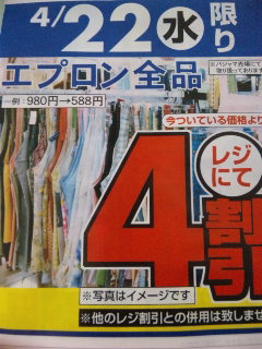 [2009/04/22] 嬉しいO(≧∇≦)o エプロン全品4 割引!!