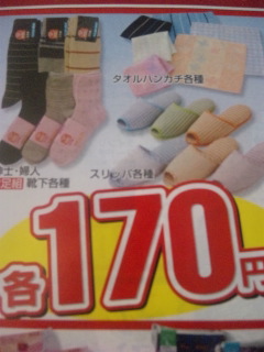 今日のお買い得☆神奈川県相模原版 タオルハンカチ・スリッパ・紳士・婦人二足組靴下各種 各170円!! Produced by No Name Ninja SEO対策テンプレート