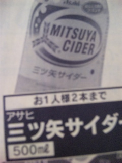 エコス城山店にて、アサヒ・三ツ矢サイダー・500ml 78円!!