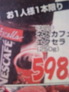 今日のお買い得☆神奈川県相模原版 ネスレ・ネスカフェエクセラ(250g ) 598円 Produced by No Name Ninja SEO対策テンプレート