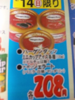 三和西橋本店にて、●ハーゲンダッツ、ミニカップアイス各種(120ml)*ドルチェは除く●ナポリ、ジェラート(バニラ・白桃・マンダリン) 208円!!