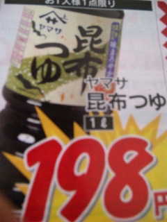 エコス城山店にて、ヤマサ・昆布つゆ1㍑198円!!