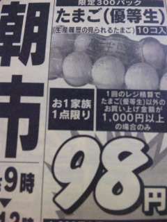 今日のお買い得☆神奈川県相模原版 優等生・たまご(10 コ入) 98 円 Produced by No Name Ninja SEO対策テンプレート