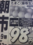 エコス・城山店にて、優等生・たまご(10コ入) 98円