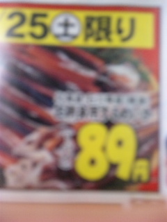 三和西橋本店にて、北海道・石川県産(解凍)お刺身用スルメイカ・1パイ89円☆