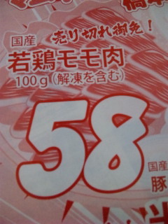 HOME > > [PR] > 食品 > 号外チラシ!!国産若鶏モモ肉1 00g(解凍を含む) 58 円!! Admin NewEntry Comment RSS
