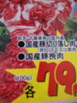 三和西橋本店にて、岩手・千葉県等の国内産!国産豚切り落し肉(部位・モモ又は肩肉)100g 79円☆国産豚挽肉もこの価格!!