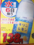 コーナン相模原西橋本店にて、KIRIN・キリンレモン1.5㍑138円。