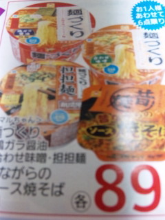 スーパーアルプス城山店にて、(マルチャン)麺づくり・鶏ガラ醤油・合わせ味噌・坦々麺・昔ながらのソース焼そば☆各89円!