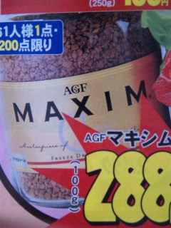三和・西橋本店にて、激安!!AGFマキシム(100g)288円☆お一人様1点200点限り。
